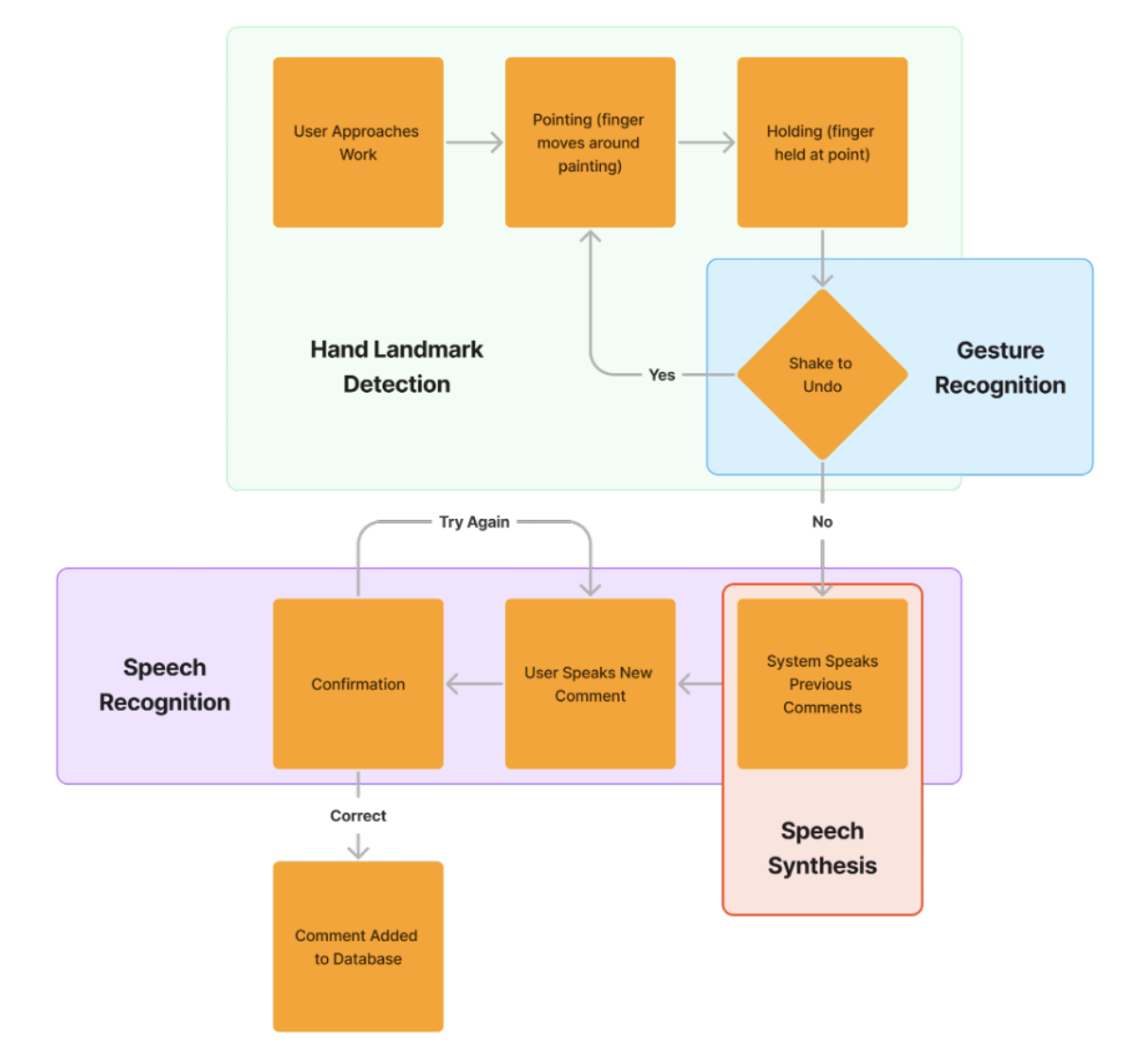 ArtTalk is a project I developed with Andrew Stoddard and Maria Ascanio for the Intelligent Multimodal User Interfaces class at MIT. Our goal was to reimagine the way we interact with art in museums and galleries. With ArtTalk, visitors can point at a detail and share their comment aloud, creating a more interactive and engaging art viewing experience.