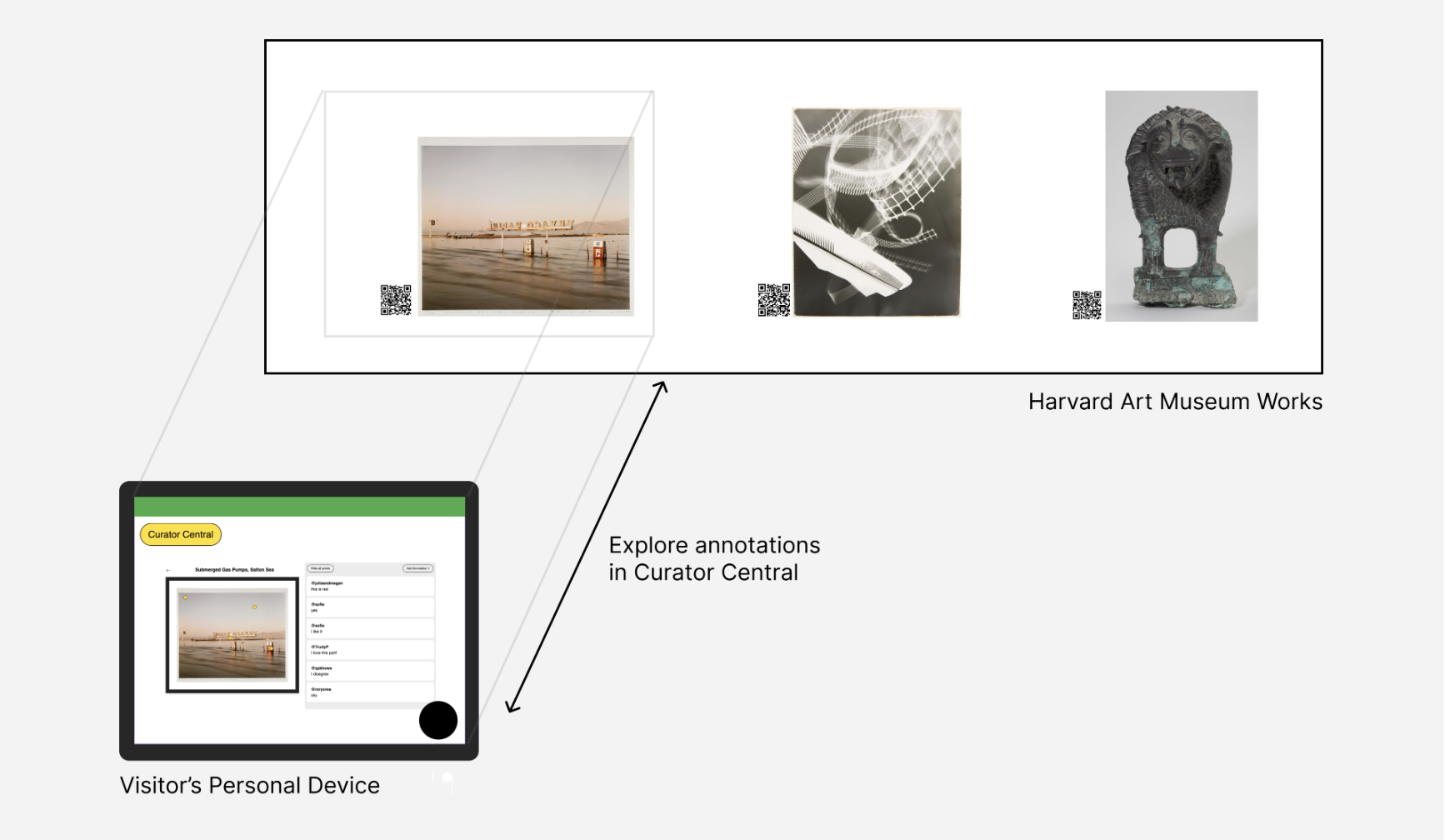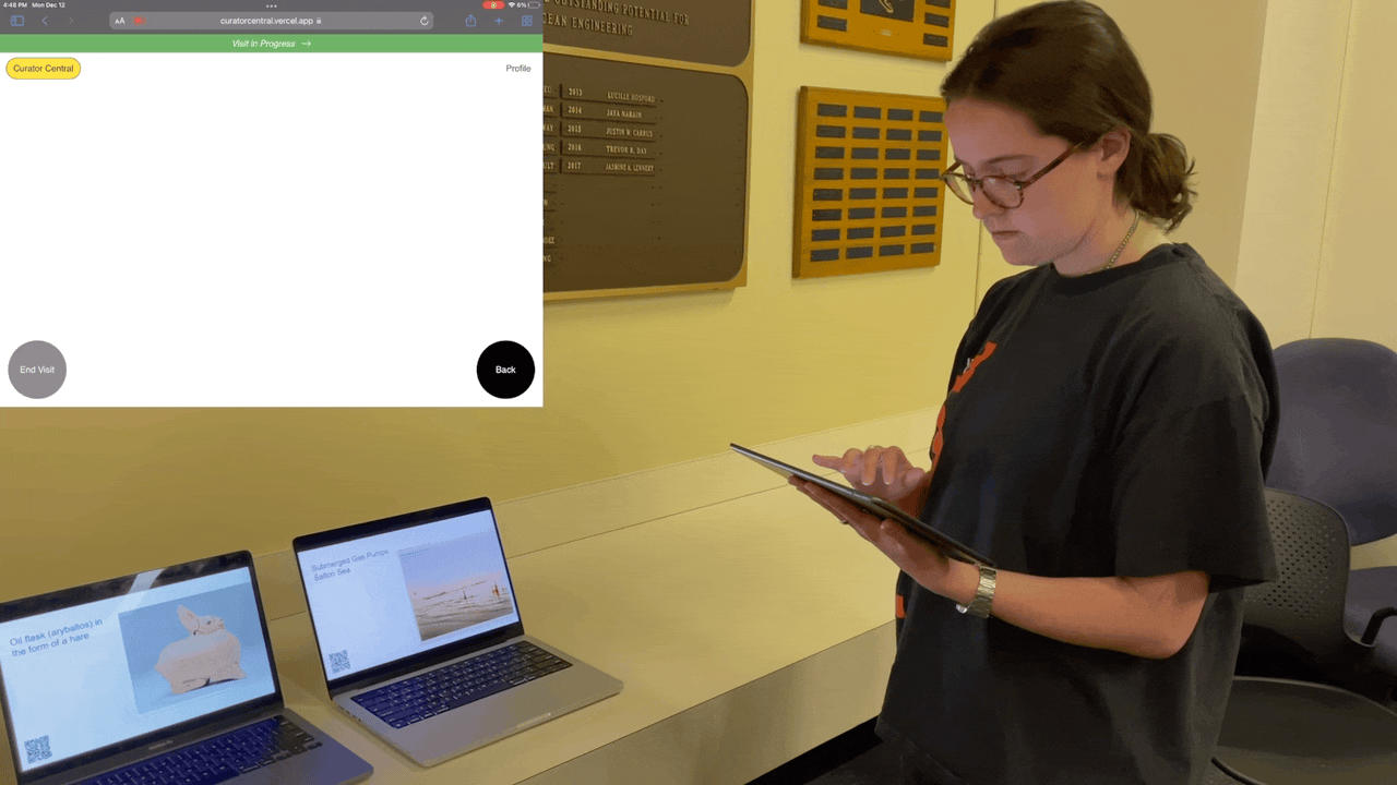 In Curator Central, scanning is facilitated through QR codes associated with each artwork. Visitors at the museum can scan these QR codes using their mobile devices. After scanning, the app adds the artwork to the user's personal collection within the platform. This allows users to track the art they were drawn to and learn more about the artwork after leaving the museum.