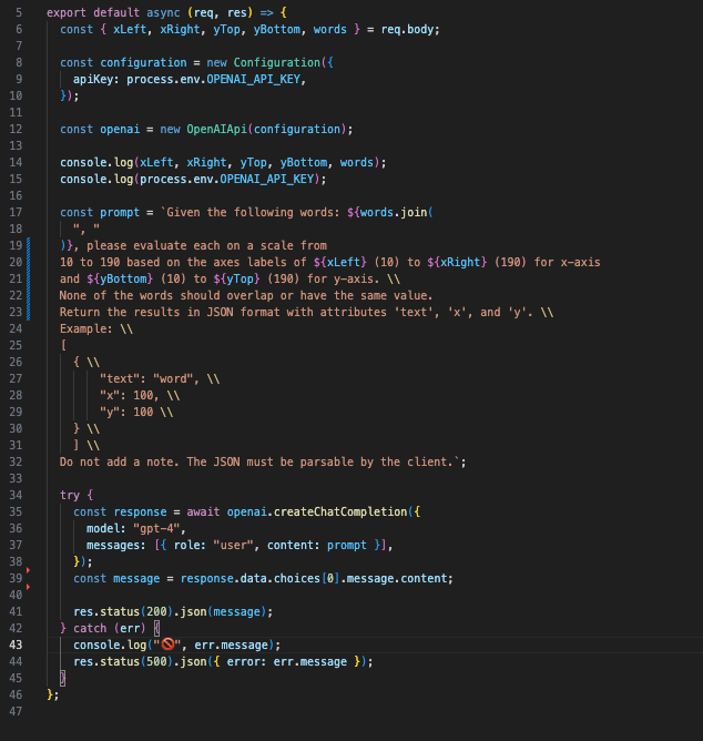 When you click "Reorganize Words," the app will send a prompt to GPT4 to get the positions for each of the words in the word list.